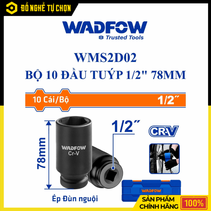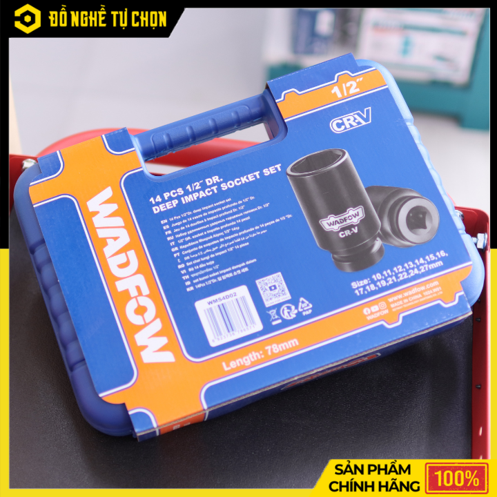 WADFOW WMS4D02 – bộ 14 đầu tuýp sâu 1/2" với chiều dài 78mm, được làm từ thép CR-V đùn nguội, là lựa chọn đáng tin cậy cho thợ cơ khí, gara ô tô và các công việc chuyên nghiệp.