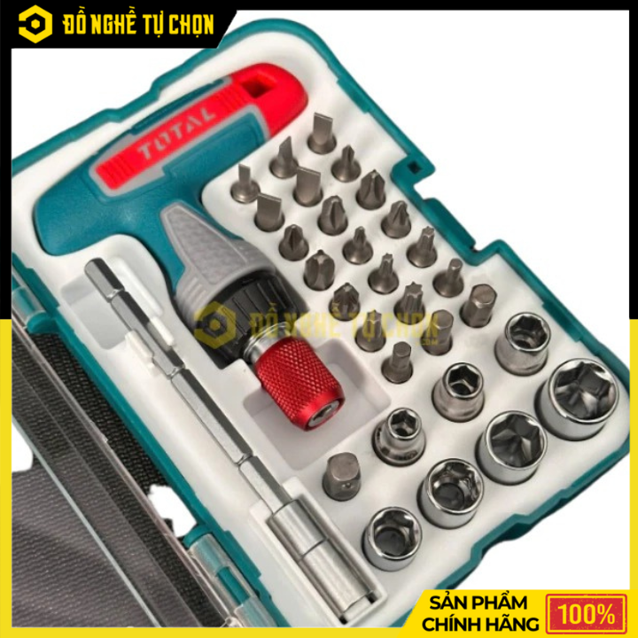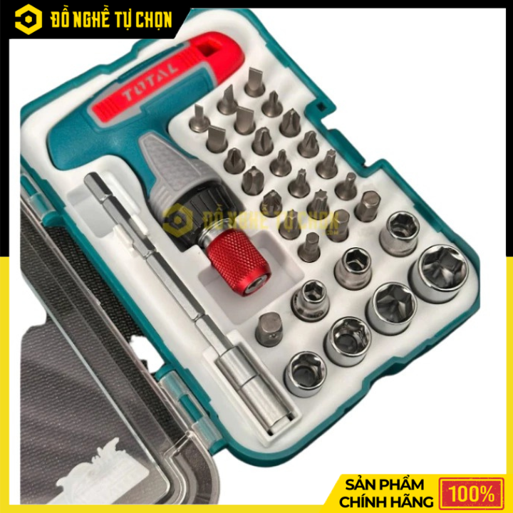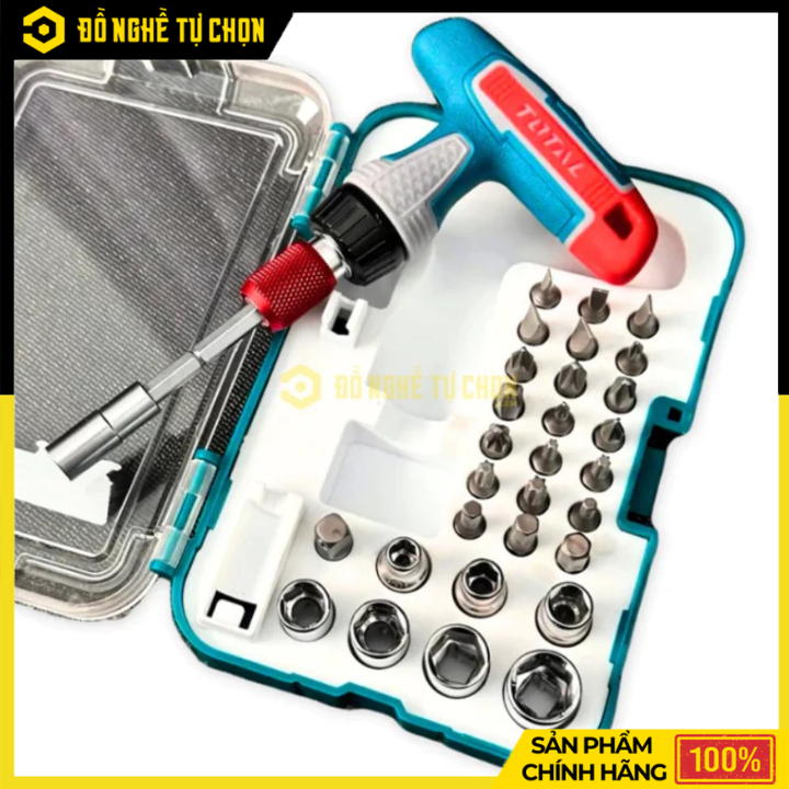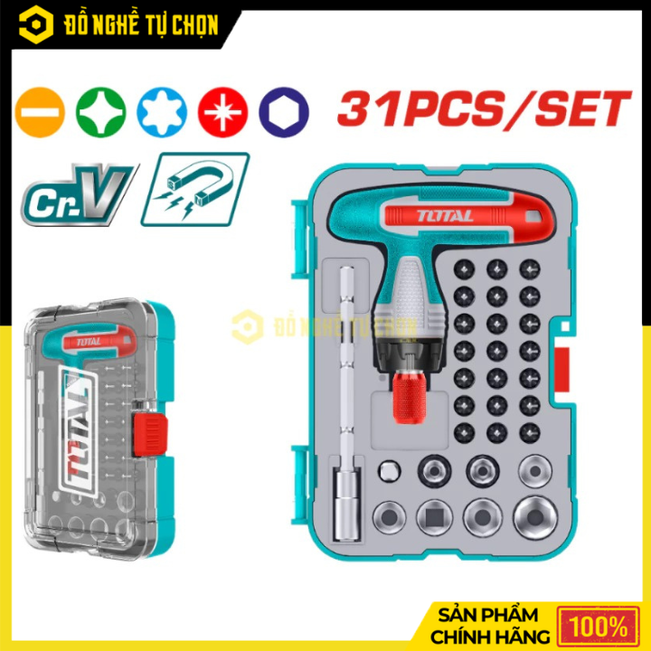 TOTAL TACSD30316 là bộ tua vít & tuýp đa năng 31 chi tiết, được thiết kế để phục vụ cả nhu cầu gia đình và thợ kỹ thuật chuyên nghiệp. Điểm nhấn của bộ dụng cụ là tay cầm chữ T chắc chắn, giúp tăng lực siết, thao tác linh hoạt và làm việc hiệu quả hơn ở nhiều góc độ.