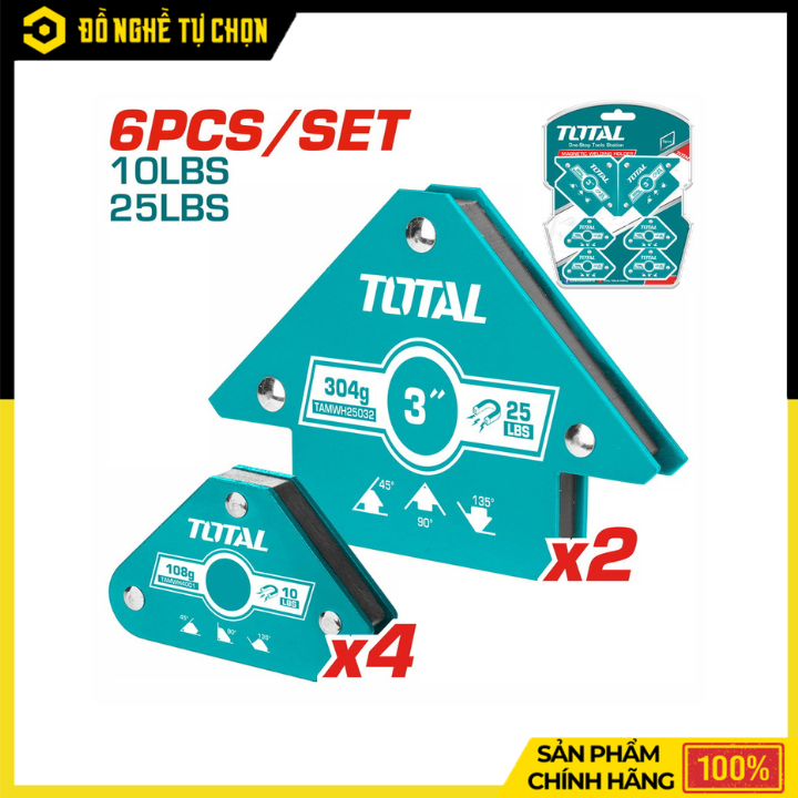 Bộ 6 Ke Nam Châm Hàn Total TAMWH6002 – Mini & 3 Inch, Giữ Góc Chuẩn | Hàng Chính Hãng, Có VAT