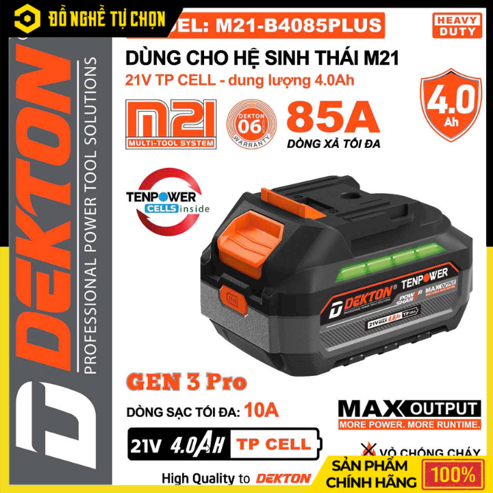 Pin 21V 4.0Ah Dekton M21-B4085PLUS Dòng Xả Cao 85A | Hàng Chính Hãng, Có VAT