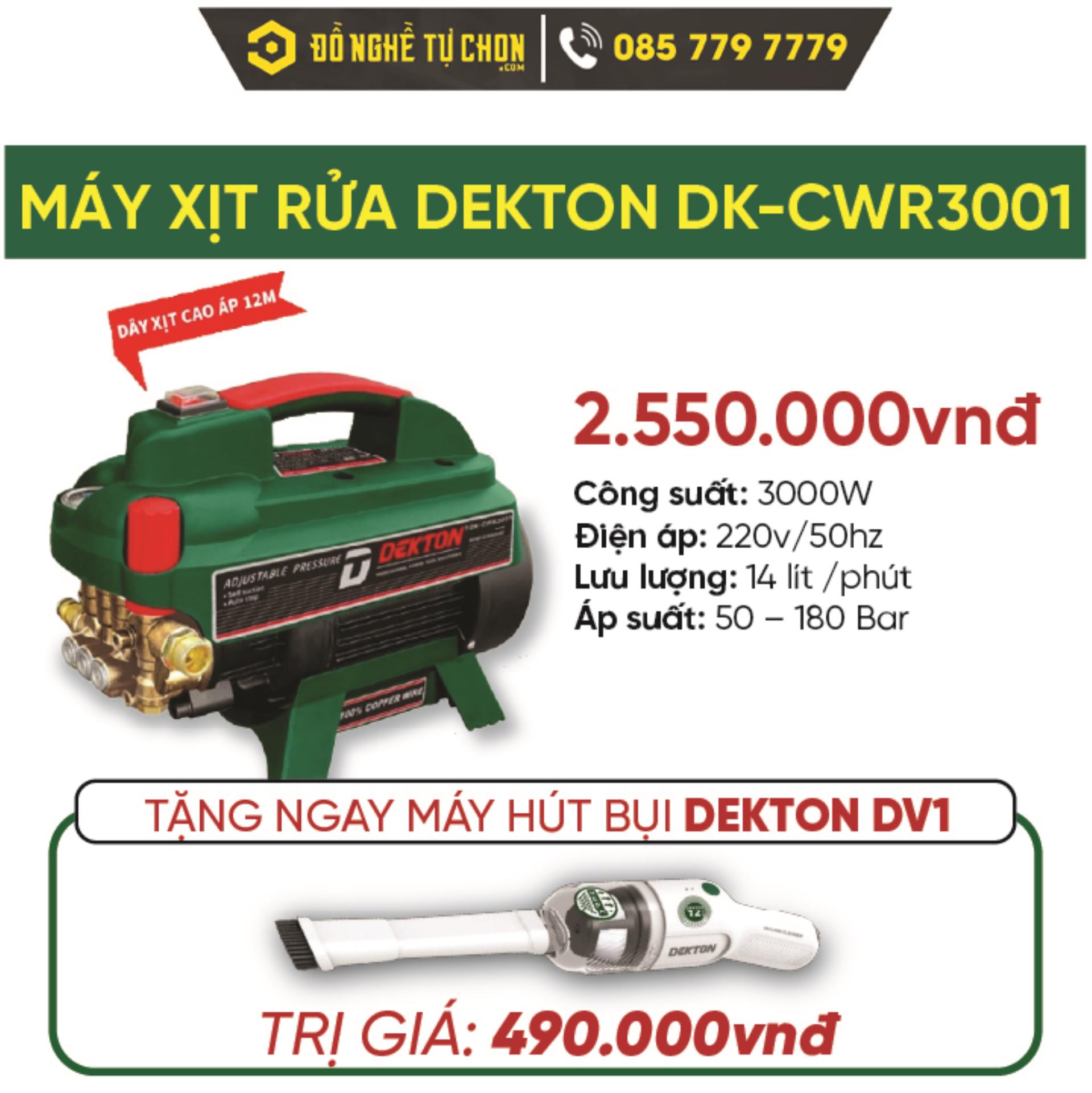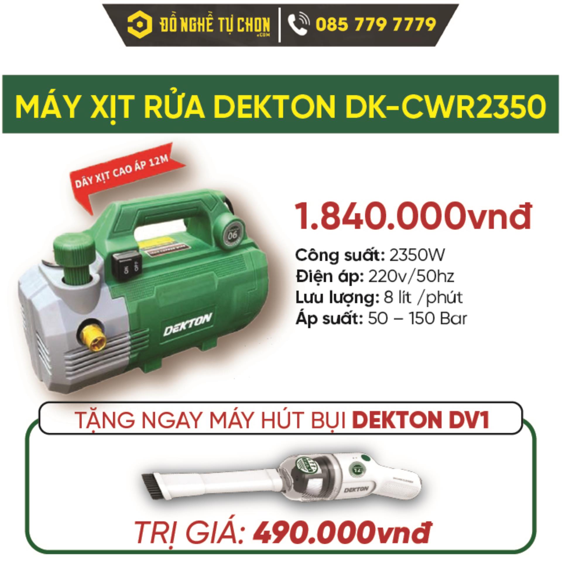 4.2 Mua máy rửa xe Dekton DK-CWR2350 hoặc DK-CWR3001, tặng ngay máy hút bụi DV1 trị giá 490.000 VNĐ.