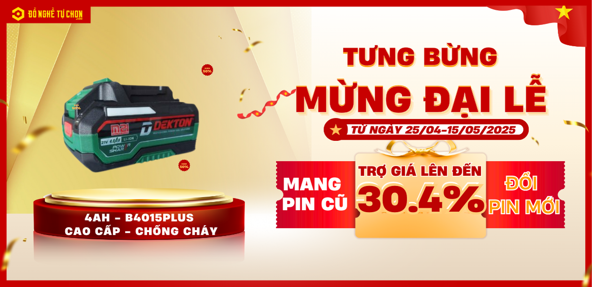 Nhân dịp lễ 30/4 và 1/5/2025, Công ty Đồ Nghề Tự Chọn trân trọng thông báo chương trình khuyến mãi đặc biệt: "Thu Cũ - Đổi Mới" dành riêng cho khách hàng thân yêu.
