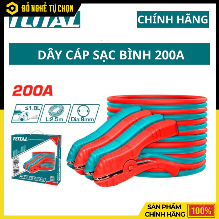 Total PBCA12001 – dây cáp sạc bình ắc quy 200A với lõi đồng nguyên chất và kẹp lớn giúp khởi động xe nhanh chóng, là trang bị cần thiết cho mọi chuyến đi.