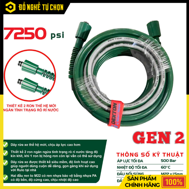 Dây rửa xe DEKTON DK-D20PLUS được thiết kế theo tiêu chuẩn dây áp lực chuyên nghiệp, phù hợp dùng cho máy rửa xe DEKTON và nhiều loại máy rửa xe khác.