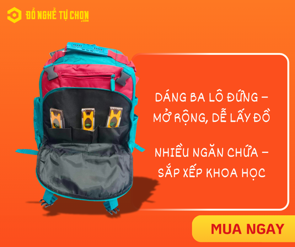 Trong công việc hằng ngày, rất nhiều anh em thợ gặp chung một tình huống: dụng cụ thì nhiều, nhưng mang theo lại bất tiện. Xách thùng thì nặng tay, để xe thì lộn xộn, còn di chuyển xa hay leo cao thì lại càng khó.Đó là lúc một chiếc ba lô đựng công cụ đúng nghĩa phát huy giá trị – không phải để “đựng cho có”, mà để giải quyết bài toán di chuyển – sắp xếp – bảo vệ đồ nghề một cách thực tế.