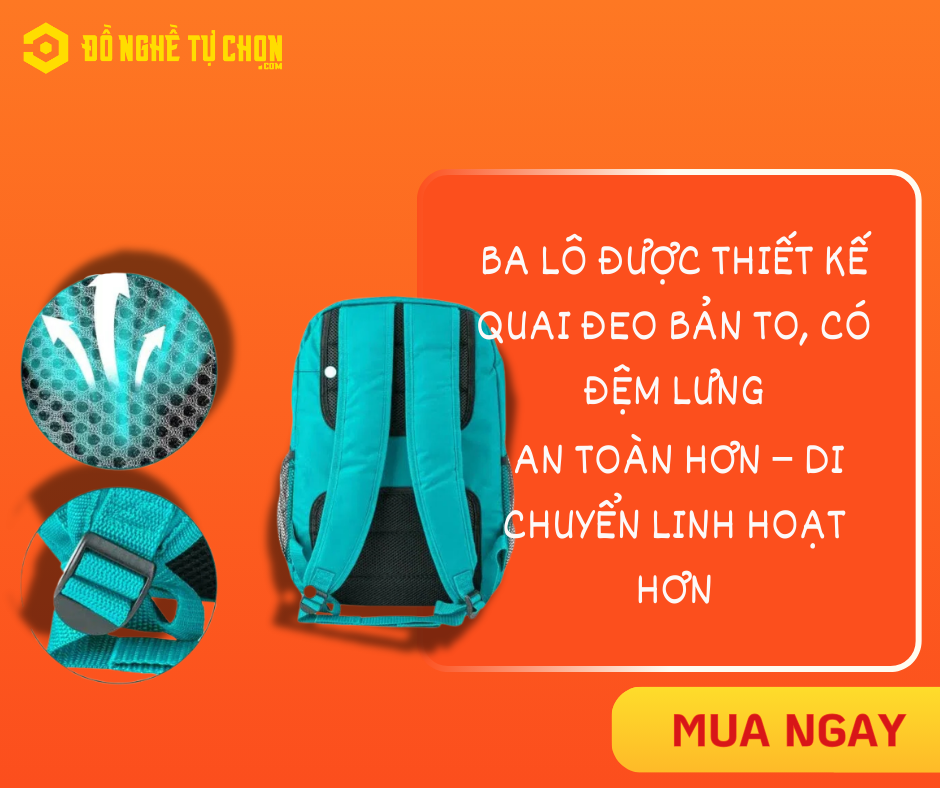 Ba lô được thiết kế quai đeo bản to, có đệm lưng, giúp: