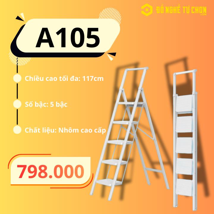 SUMIKA A105 là mẫu thang hướng đến sinh hoạt gia đình an toàn và tiện lợi. Chiều cao vừa phải giúp người dùng dễ đứng, dễ giữ thăng bằng, đặc biệt phù hợp với người lớn tuổi hoặc phụ nữ.