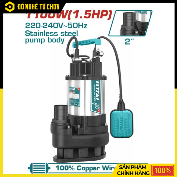 Máy Bơm Chìm Nước Thải 1100W Total TWP7110016 – Công Suất Lớn, Bơm Mạnh, Bền Bỉ Vượt Trội – Hàng Chính Hãng, Có VAT