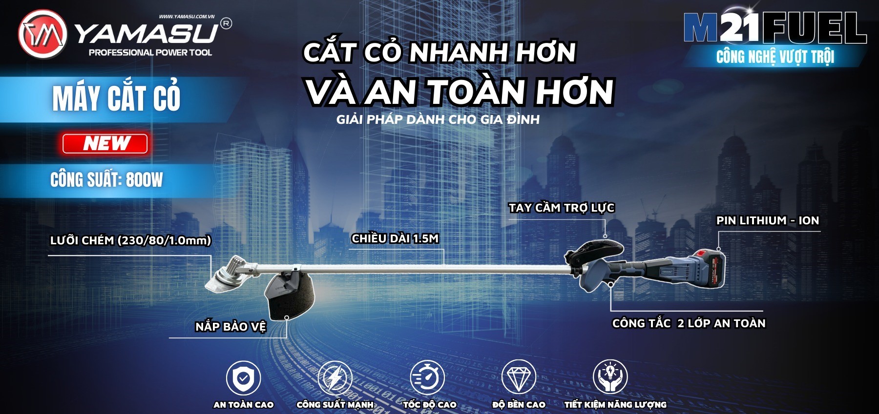 Máy Cắt Cỏ Pin YAMASU YMS-MCC01 – Nhẹ Gọn, Mạnh Mẽ, Không Chổi Than