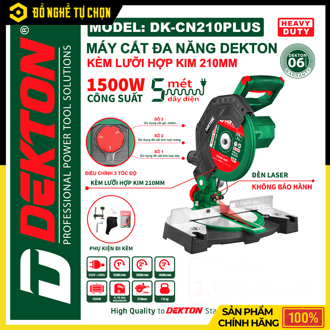 Máy Cắt Nhôm Dekton DK-CN210PLUS – Lưỡi Hợp Kim 210mm – Công Suất 1500W – Tốc Độ 4800v/p – Chính Hãng