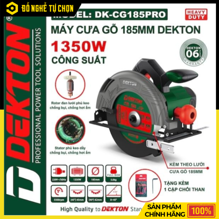 Máy Cưa Gỗ Dekton DK-CG185PRO – Công Suất Mạnh, Cắt Chính Xác, Bền Bỉ Theo Thời Gian, Hàng Chính Hãng, Có VAT