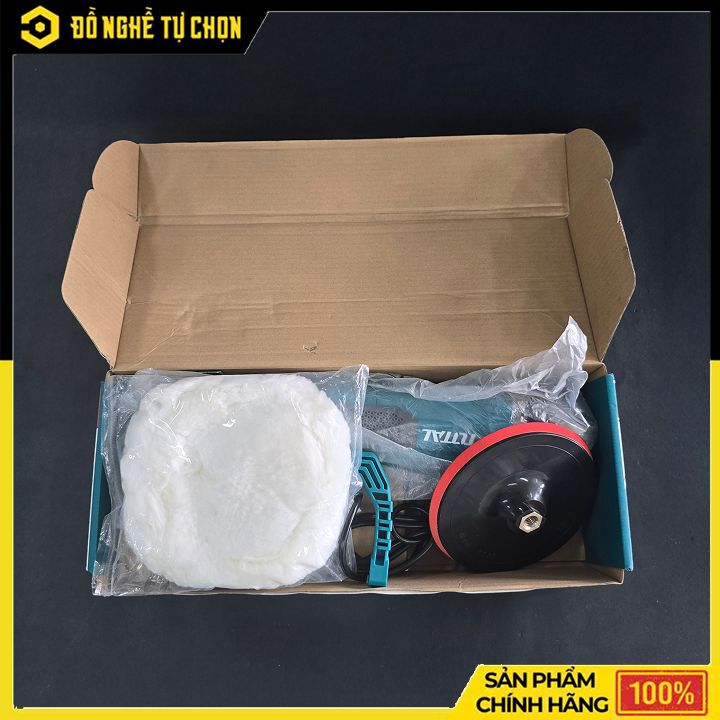 Phụ kiện đầy đủ: tay cầm chữ D, đĩa đánh bóng, chổi than, chìa khóa lục giác.