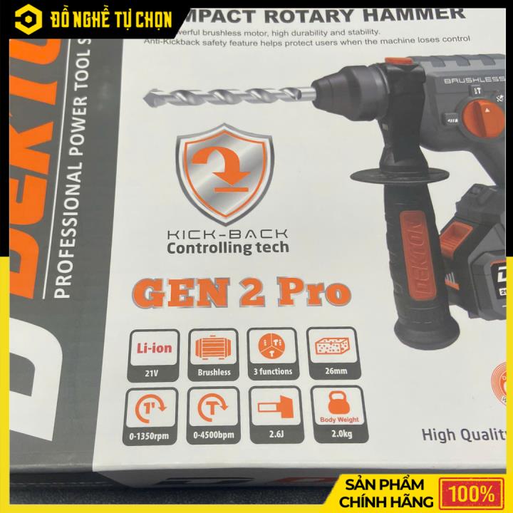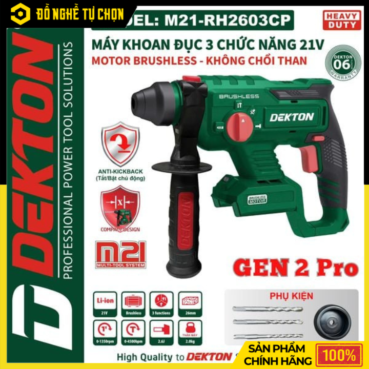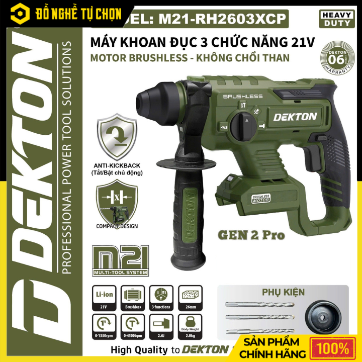Máy Khoan Búa Pin Dekton M21-RH2603CP – Động Cơ Không Chổi Than – Lực Đập 2.6J – Đầu Kẹp SDS Plus – Hàng Chính Hãng Có VAT