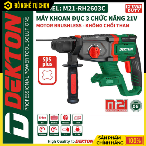 Dekton M21-RH2603C là dòng máy khoan búa pin 21V mạnh mẽ, phù hợp cho thợ xây dựng, thợ điện nước, thi công công trình và người dùng chuyên nghiệp.