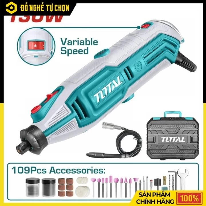 Máy Mài Khắc Mini Total TG513326 – 130W – Điều Chỉnh Tốc Độ – Tặng 109 Phụ Kiện – Hộp Nhựa BMC – Chính Hãng Có VAT