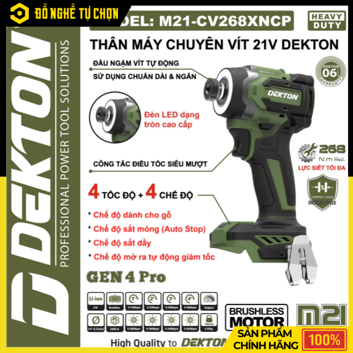 Máy Vặn Vít Thế Hệ 4 Dekton M21-CV268XNCP – Nâng Cấp Mạnh Mẽ, Thông Minh Vượt Trội | Hàng Chính Hãng, Có VAT