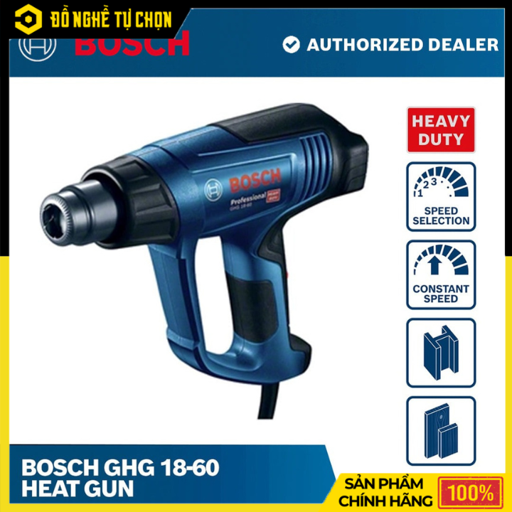 Máy thổi hơi nóng Bosch GHG 18-60 là thiết bị cao cấp thuộc thế hệ mới nhất của Bosch, được thiết kế chuyên nghiệp cho các công việc sửa chữa, chế tác và gia công kỹ thuật.