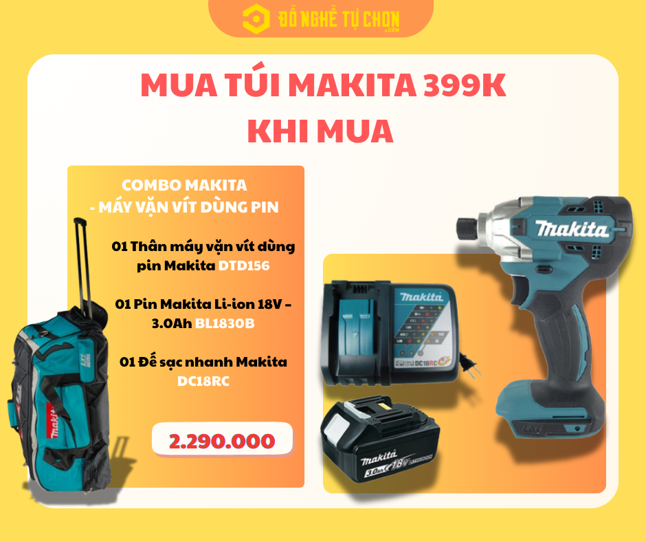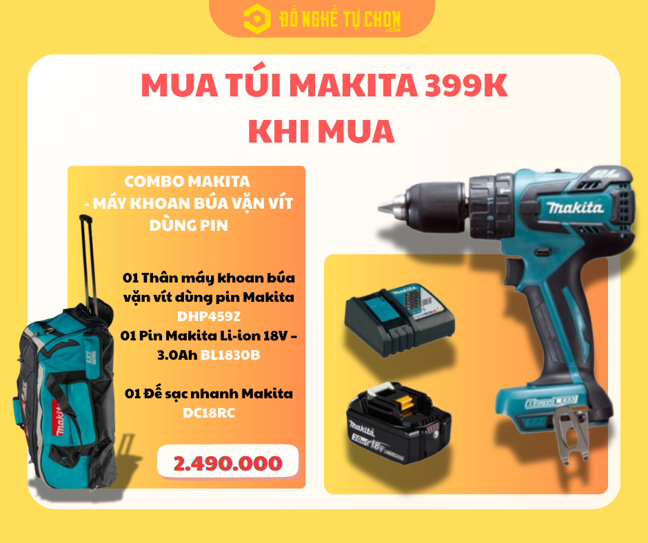 Mua Combo Makita DTD156Z, DHP459Z hoặc DHP490Z – Cơ Hội Sở Hữu Túi Makita Chính Hãng Chỉ 399.000đ Tại Đồ Nghề Tự Chọn