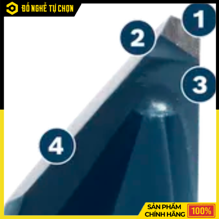 Đầu mũi phủ carbide siêu cứng – dễ dàng xuyên qua gạch men, granite, hạn chế mẻ đầu mũi.