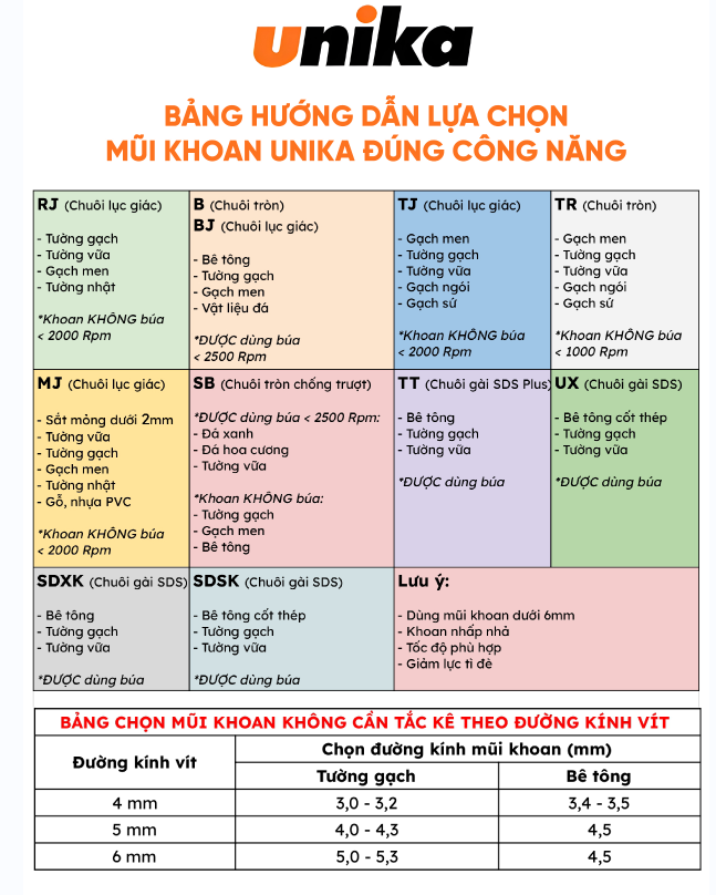 1. Mũi khoan UNIKA MJ dùng được cho máy bắt vít không?