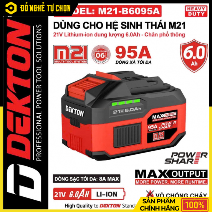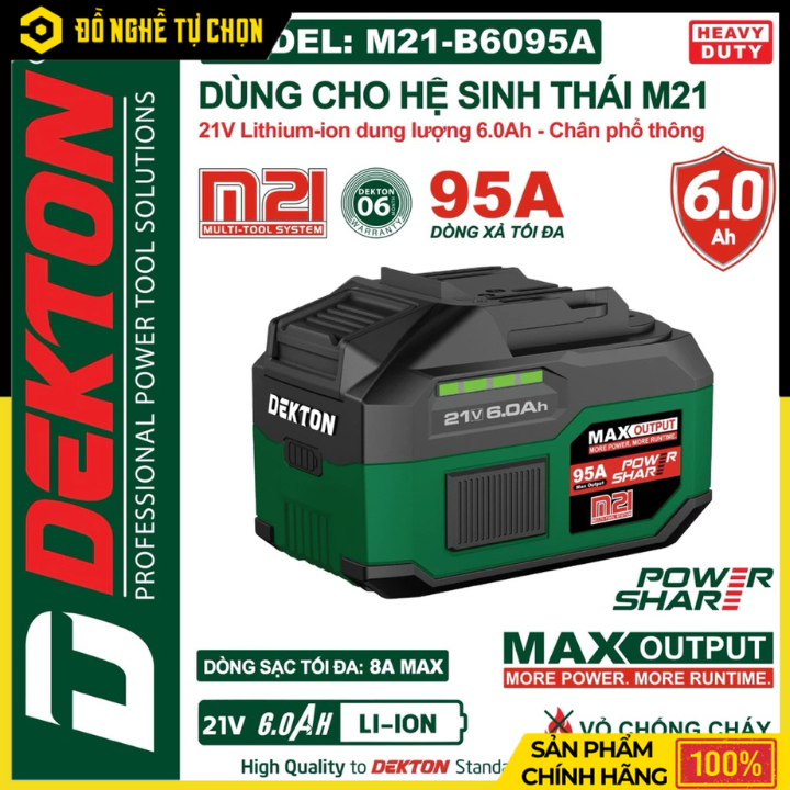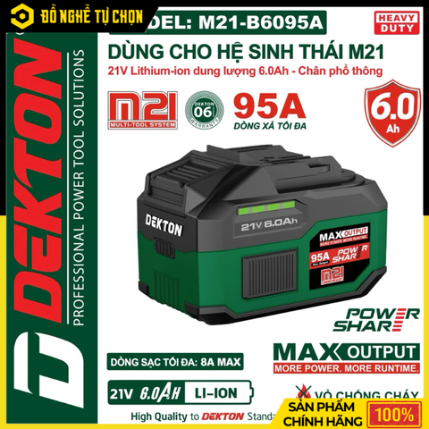 Pin Dekton 21V 6.0Ah M21-B6095A – Dung Lượng Lớn, Nguồn Điện Ổn Định Cho Hệ Pin M21, Hàng Chính Hãng, Có VAT