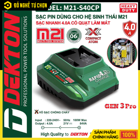 Đế Sạc Nhanh 4.0Ah Dekton M21-S40CP Gen 3 Compact Atom – Sạc Siêu Tốc, An Toàn, Công Nghệ Thế Hệ 3 – Hàng Chính Hãng, Có VAT