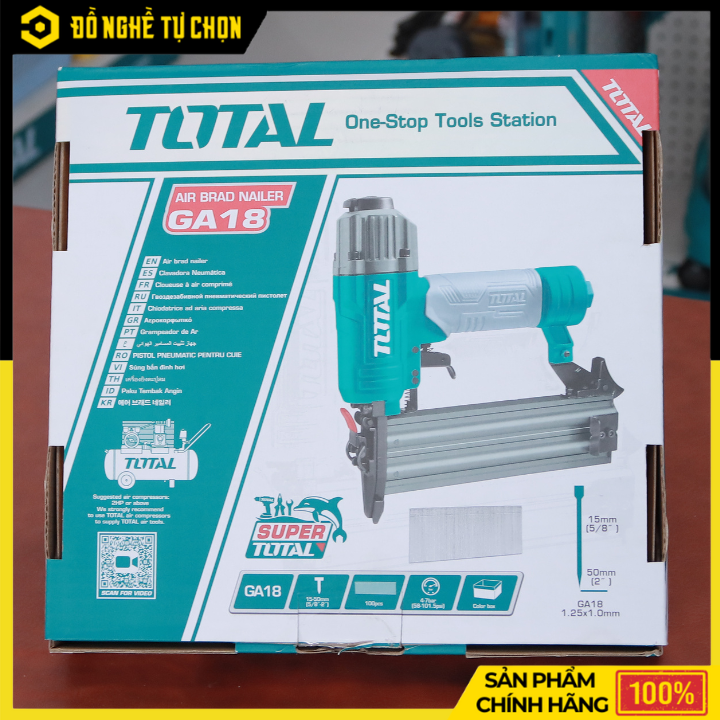 Súng Bắn Đinh Hơi Total TAT83501 – Đinh Thẳng Ga18, Bắn Đinh 15–50mm, Áp Suất 4–7 Bar – Hàng Chính Hãng Có VAT
