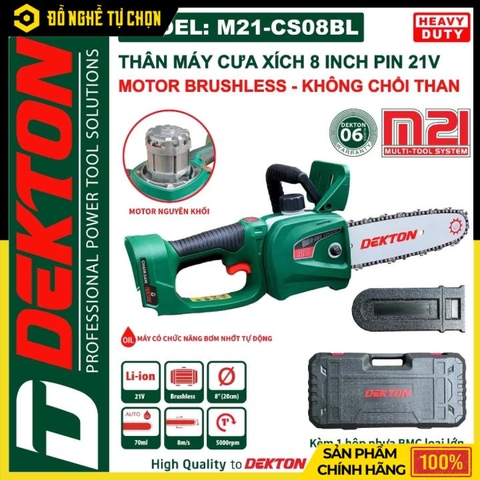 [THÂN] Máy Cưa Xích Dùng Pin Dekton M21-CS08BL – Nhỏ Gọn, Cắt Nhanh, Động Cơ Brushless, Hàng Chính Hãng, Có VAT