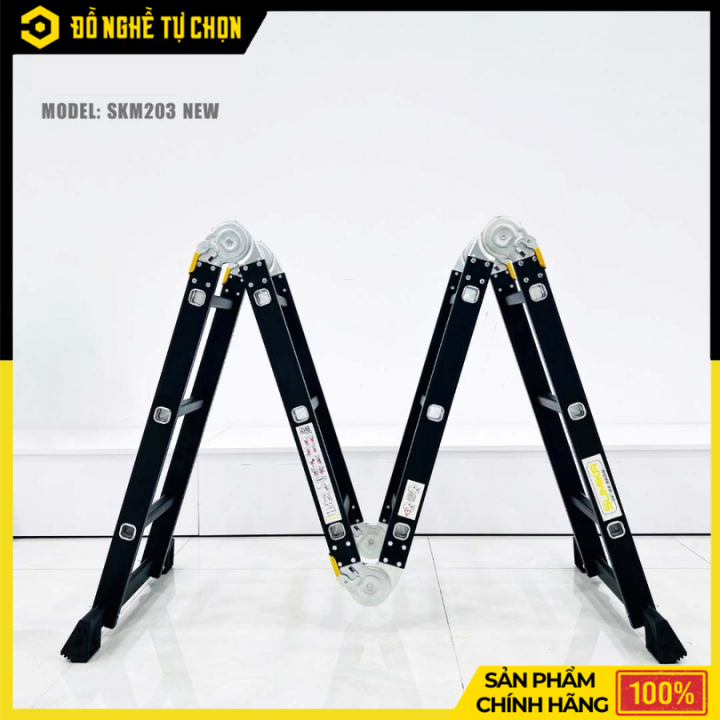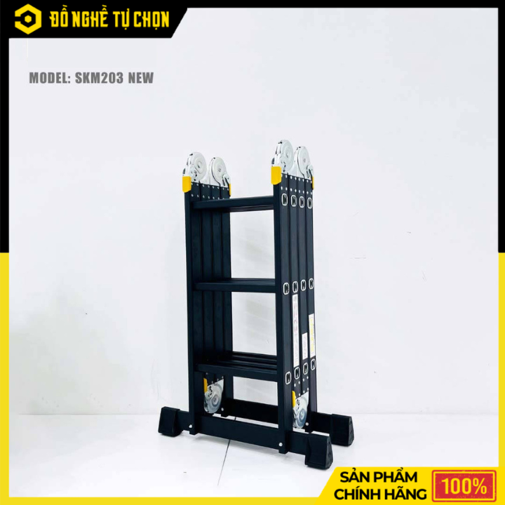 Thang nhôm gấp 4 đoạn Sumika SKM203 NEW là dòng thang đa năng được làm từ hợp kim nhôm cao cấp, bền nhẹ và chống gỉ sét. Thang có thể sử dụng ở nhiều dạng như chữ A, chữ I hoặc các kiểu gấp linh hoạt, phù hợp cho gia đình, văn phòng và công trình sửa chữa.