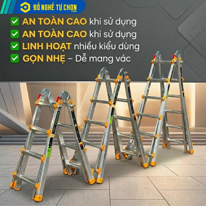 Cho phép chuyển đổi các dạng thang nhanh chóng, khóa chắc chắn, an toàn khi thao tác.