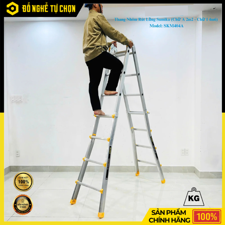 Thang Nhôm Chữ A Rút Lồng Sumika SKM404A – Đa Năng, An Toàn, Chịu Tải Lớn | Hàng Chính Hãng, Có VAT
