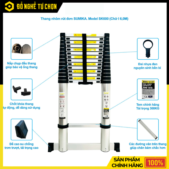 Sumika SK600 là chiếc thang lý tưởng cho mọi công việc đòi hỏi độ cao và tính an toàn tuyệt đối. Với khả năng rút gọn gọn nhẹ, độ bền cao và đạt chuẩn quốc tế, sản phẩm này sẽ là “trợ thủ đắc lực” cho thợ kỹ thuật, thi công và cả người dùng chuyên nghiệp.