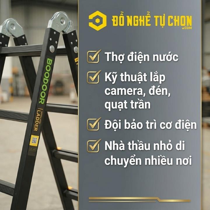 Đối với anh em thợ điện lạnh, điện nước hay kỹ thuật lắp đặt dân dụng, việc di chuyển nhiều công trình trong ngày là chuyện quen thuộc. Mỗi nơi lại có độ cao khác nhau: lúc lắp máy lạnh tầng 2, khi sửa đường ống âm trần, lúc đấu nối hệ thống điện cửa hàng.