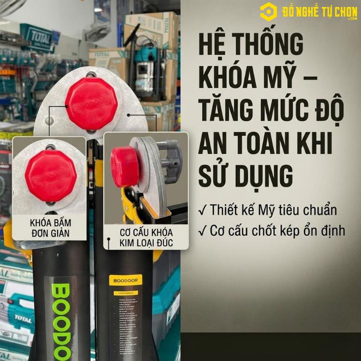 Nhiều dòng thang phổ thông chỉ có độ dày 2.0 – 2.4mm. Trong khi đó, Boodoor BRL25B sở hữu khung nhôm dày 2.6mm, tăng độ cứng vững rõ rệt.