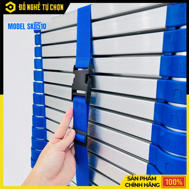 Đai xanh khóa an toàn: Giữ thang cố định khi gấp, tránh bung lỏng khi di chuyển