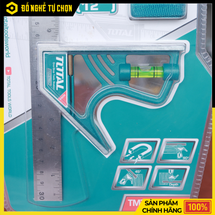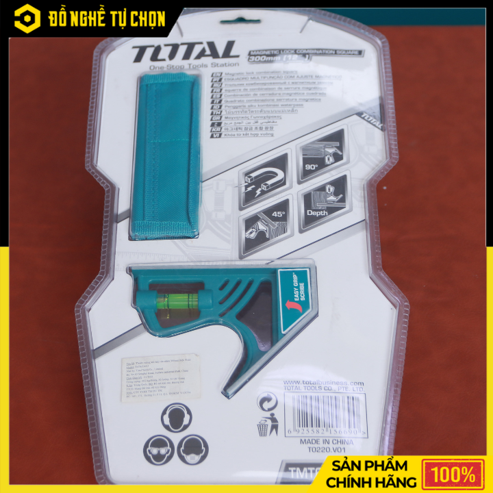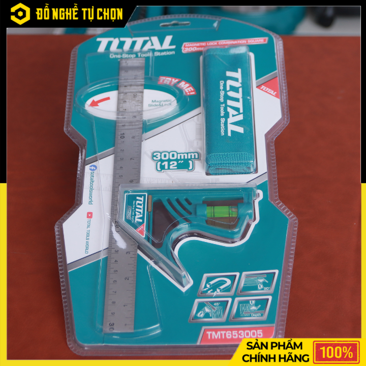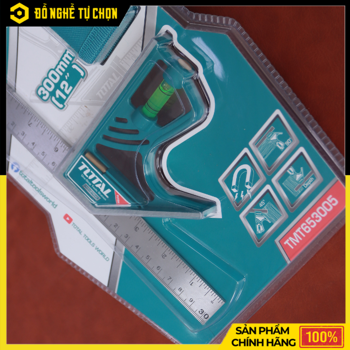 Thước Vuông Kết Hợp Total TMT653005 – 300mm (12”) – Lưỡi Inox Chống Gỉ – Có Nút Khóa Từ Tính – Hàng Chính Hãng Có VAT