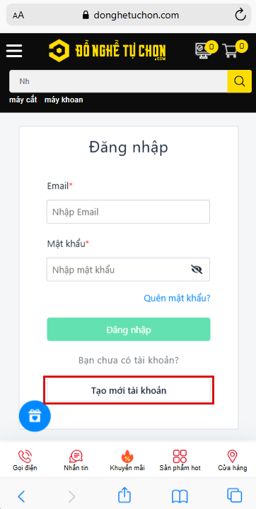 Bước 1: Nhấn vào link đăng kí Tiếp Thị Liên Kết. Nếu khách hàng đã có tài khoản từ trước, chọn "Đăng nhập", Nếu chưa có nhấn chọn "Tạo mới tài khoản".