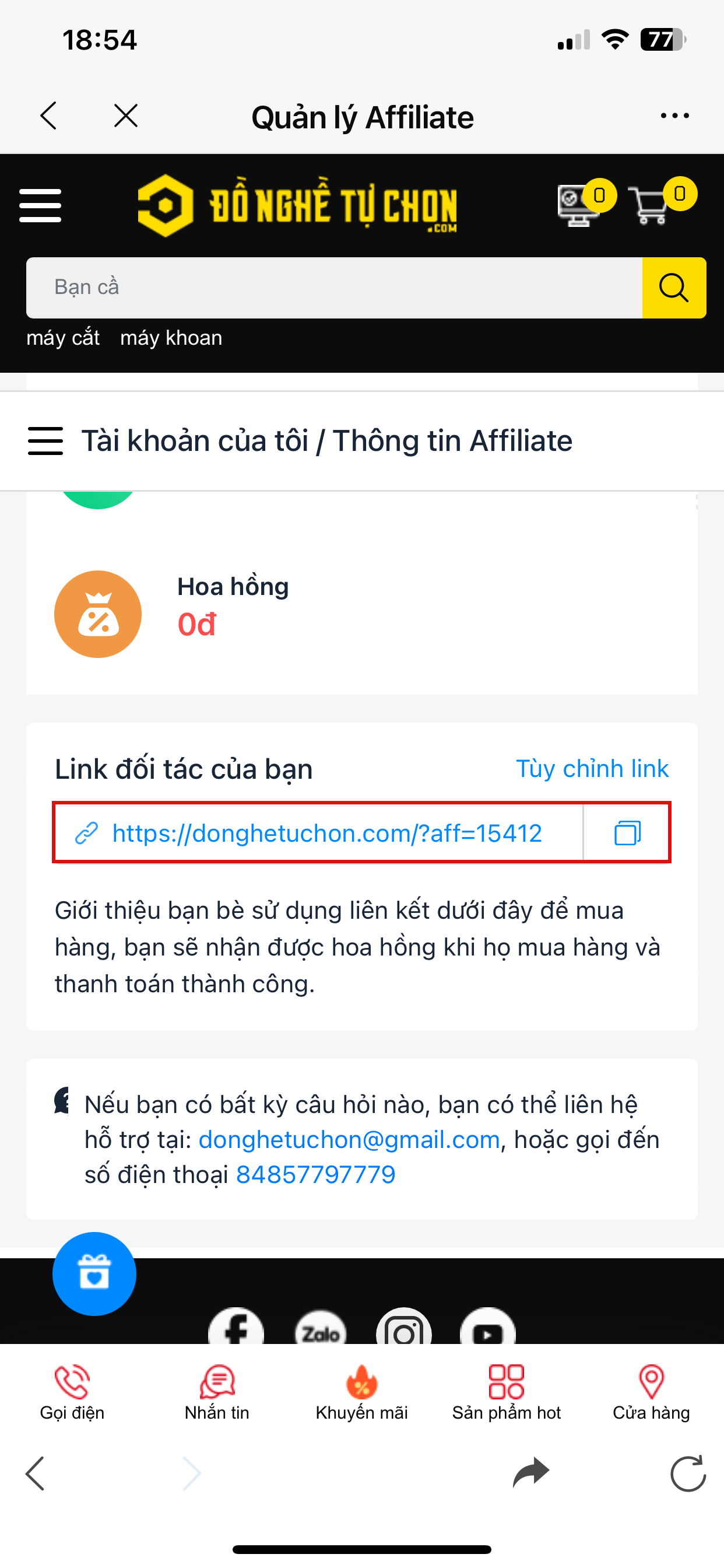 Các đơn hàng thành công sẽ được theo dõi chung với tài khoản Affiliate trên web của Đồ Nghề Tự Chọn tại đây
