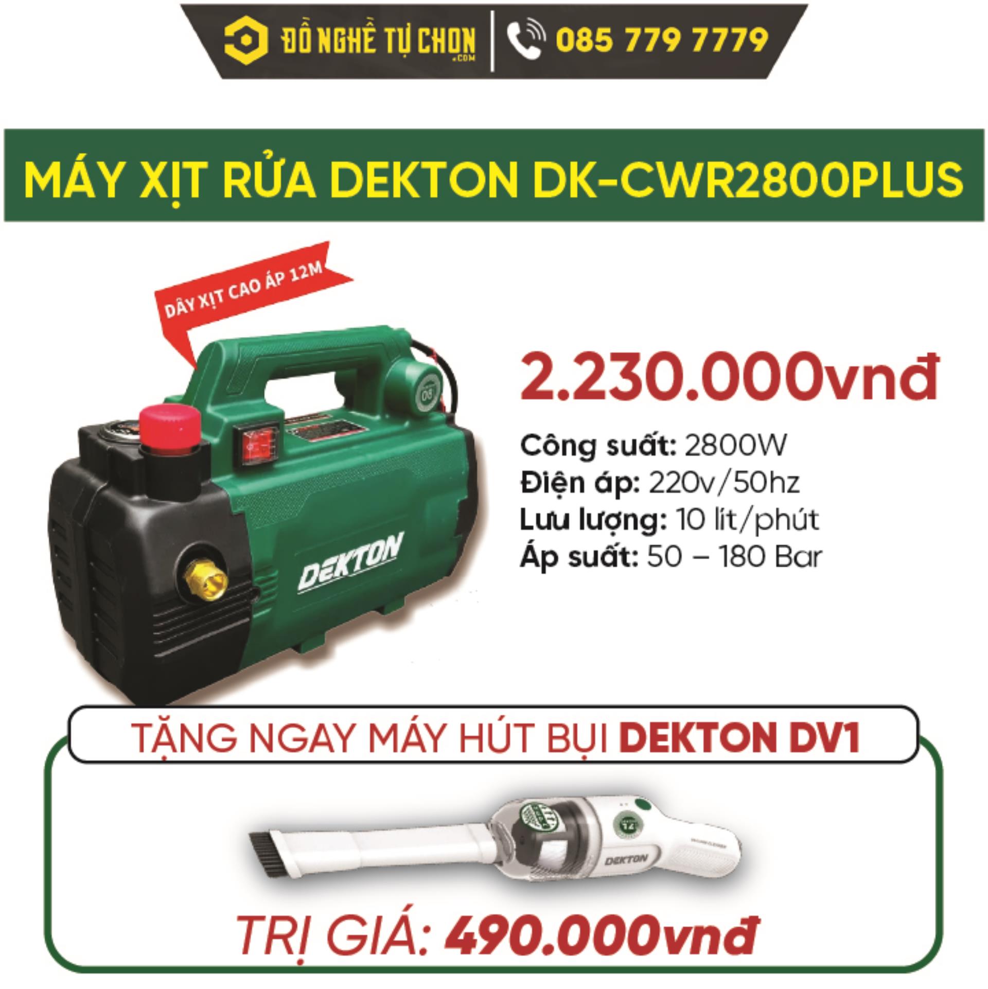 2. Mua Máy Xịt Rửa DK-CWR2800PLUS, DK-CWR 3001, DK-CWR2350 - Tặng Ngay 01 Máy Hút Bụi Dekton DV1 Trị Giá 490.000đ