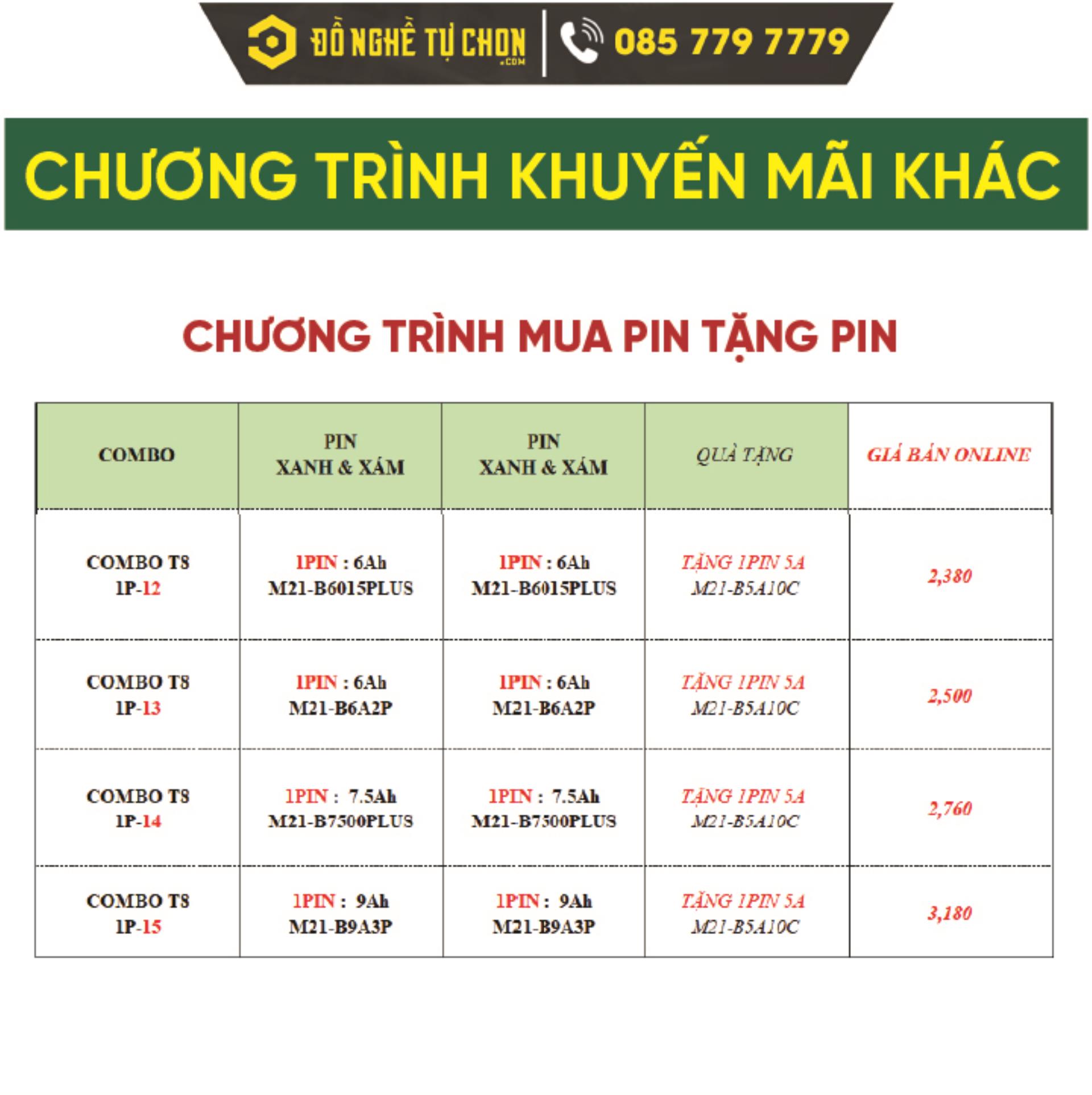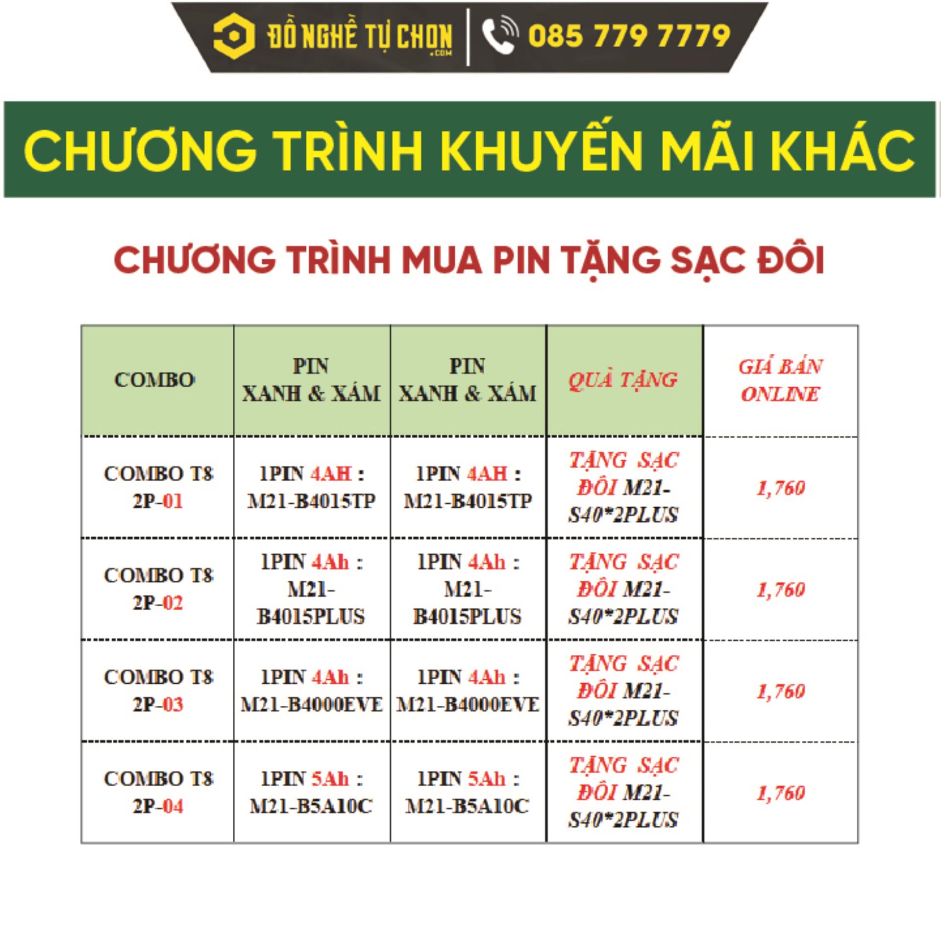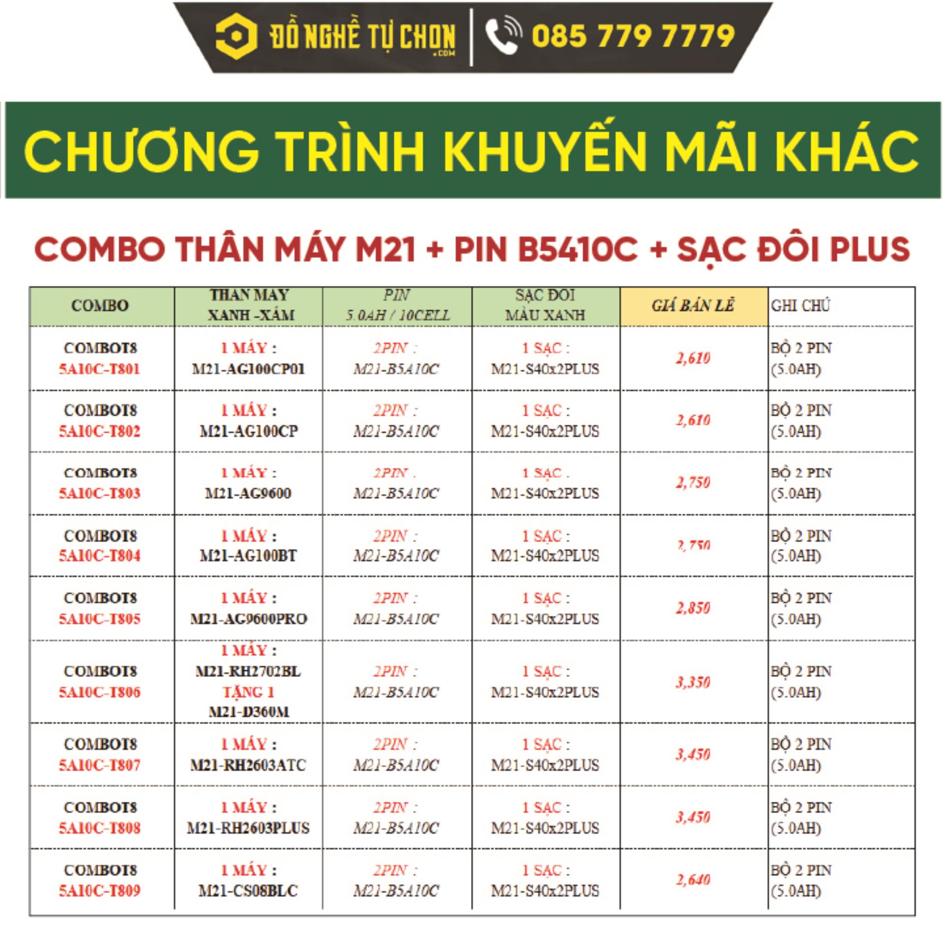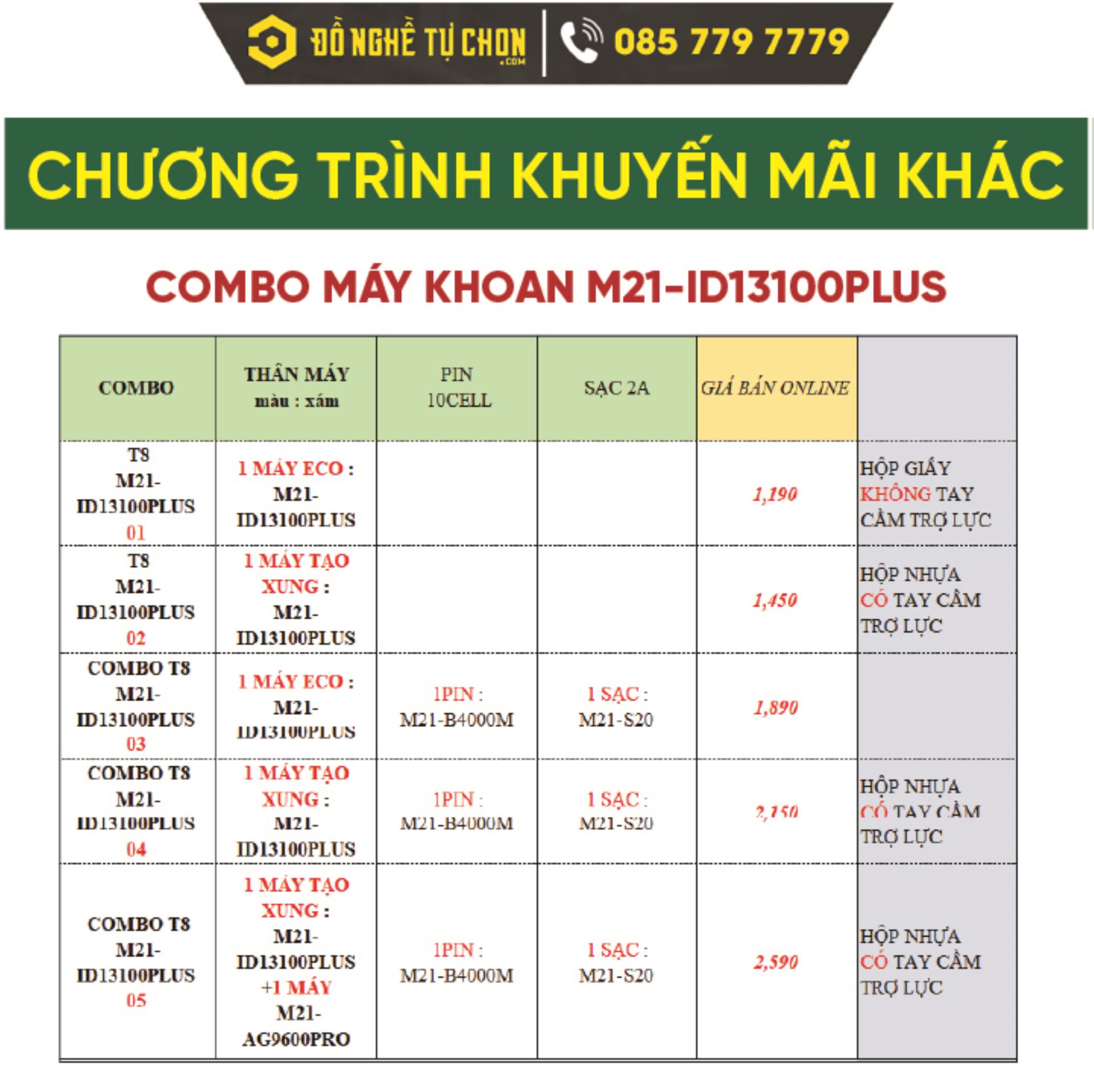 - Khi mua 01 máy M21-KB1385PRO bất kỳ, bạn sẽ nhận ngay 1 chuyên vít 4V DK-CV0402 trị giá 490.000đ. Đây là cơ hội tuyệt vời để bạn sở hữu thêm công cụ hữu ích mà không tốn thêm chi phí.