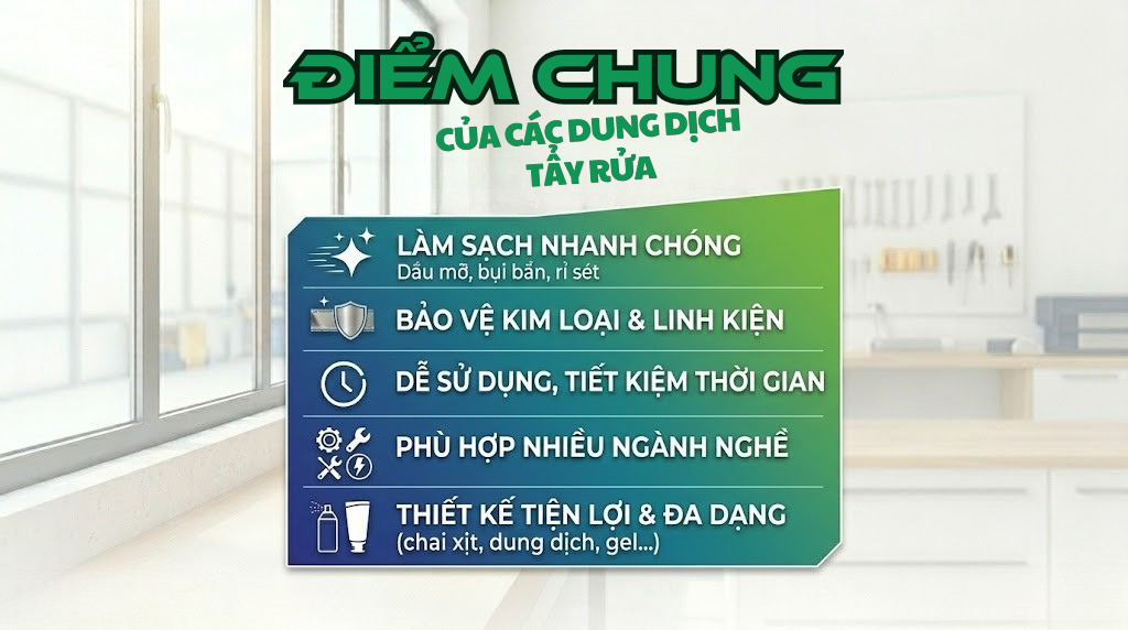 ĐIỂM CHUNG CỦA CÁC DUNG DỊCH TẨY RỬA ĐA NĂNG TẠI DNTC