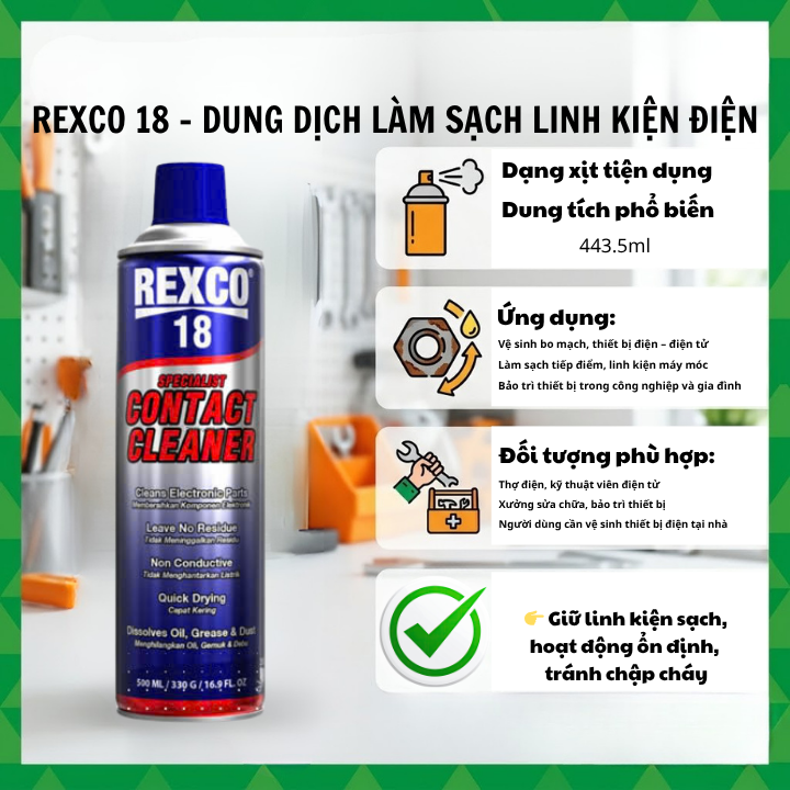 2. Dung Dịch Làm Sạch Linh Kiện Điện Rexco 18 – Giải Pháp Vệ Sinh An Toàn, Hiệu Quả Cho Thiết Bị