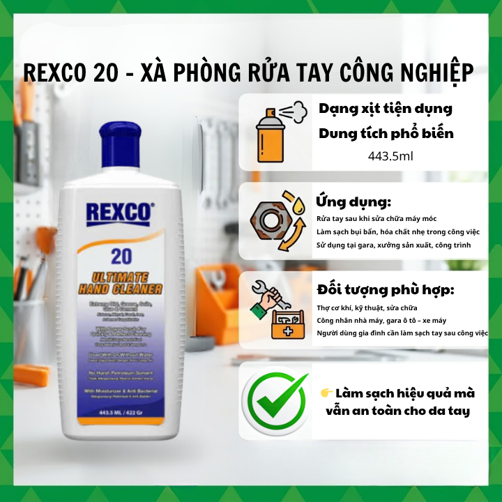 3. Xà Phòng Rửa Tay Công Nghiệp Rexco 20 – Đánh Bay Dầu Mỡ, Bảo Vệ Da Tay Hiệu Quả