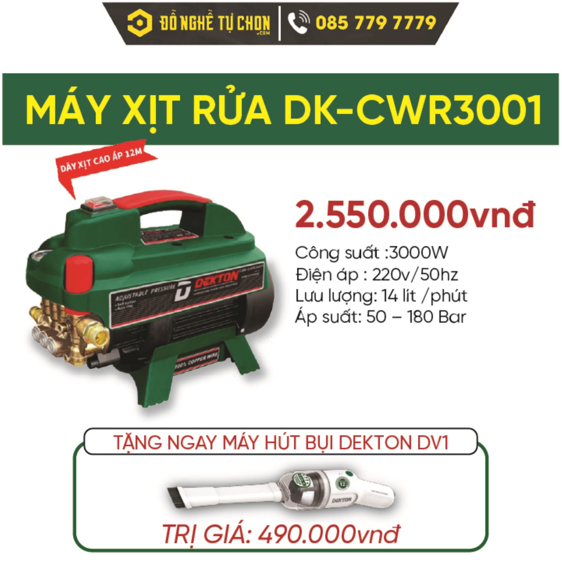 Đây chính là thời điểm vàng để bạn sở hữu ngay một chiếc máy xịt rửa Dekton với giá cực kỳ ưu đãi. Đừng bỏ lỡ cơ hội này! Hãy liên hệ với chúng tôi qua hotline 085 779 7779 hoặc truy cập website Đồ Nghề Tự Chọn để đặt hàng ngay hôm nay.
