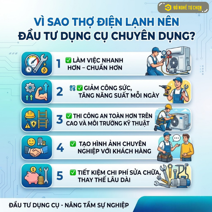 Vì Sao Thợ Điện Lạnh Nên Đầu Tư Dụng Cụ Chuyên Dụng?