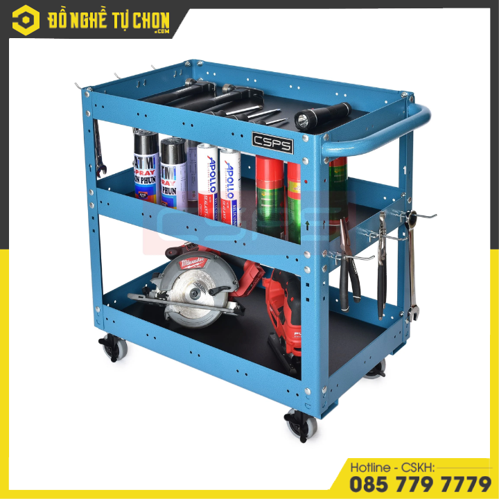 Xe Đẩy CSPS 3 Ngăn – 71cm Màu Xanh – Giải Pháp Di Chuyển Dụng Cụ Tiện Lợi & Gọn Gàng Cho Xưởng