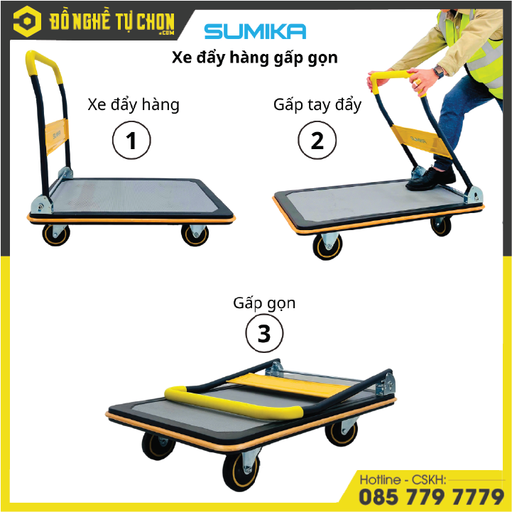 Với trọng lượng 16.7kg, xe đẩy hàng SUMIKA T300 là một công cụ hữu ích và đáng tin cậy trong công việc vận chuyển hàng hóa nặng và cồng kềnh.